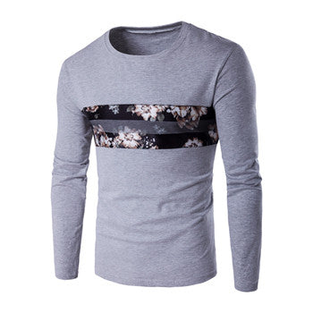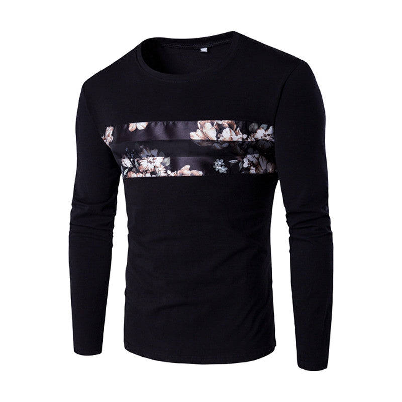 Floral T Shirts Hombre Camisa Masculina Menswear Men's Casual Slim Fit Long Sleeved O Neck T Shirts Hombre BL